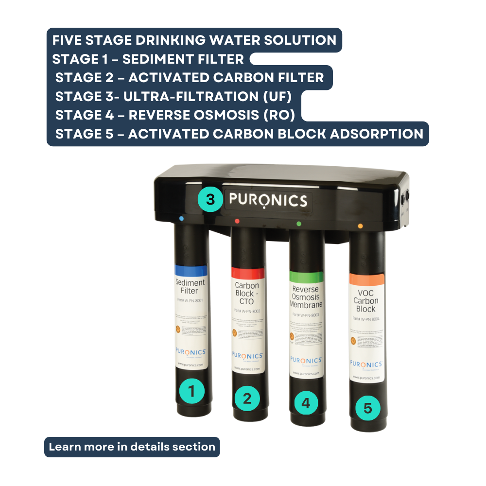 Unlike simple carbon filters, RO systems reduce virtually everything dissolved in your water—chlorine, heavy metals, fluoride, PFAS, pharmaceuticals. Filters like pitchers or faucet units only address taste, chlorine, and sediment.
