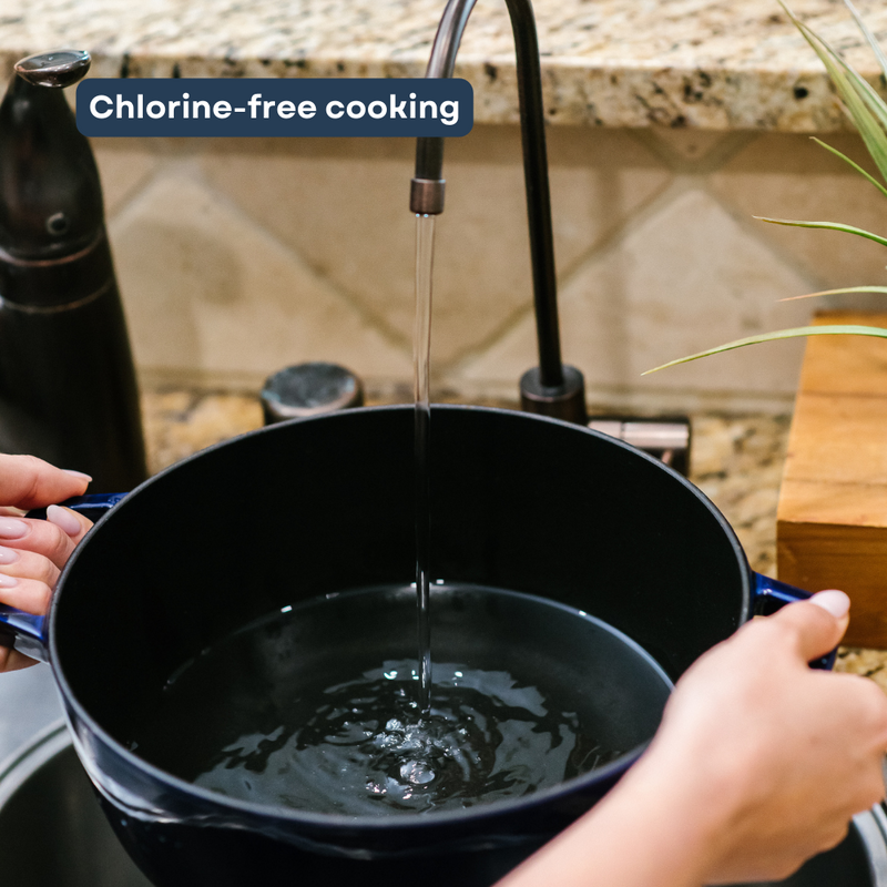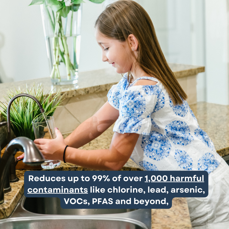 This certified 3‑stage RO system removes between 97%-99.9% of lead, fluoride, PFAS, VOCs, pharmaceuticals, chlorine, heavy metals, and microplastics—exceeding most standard filters.