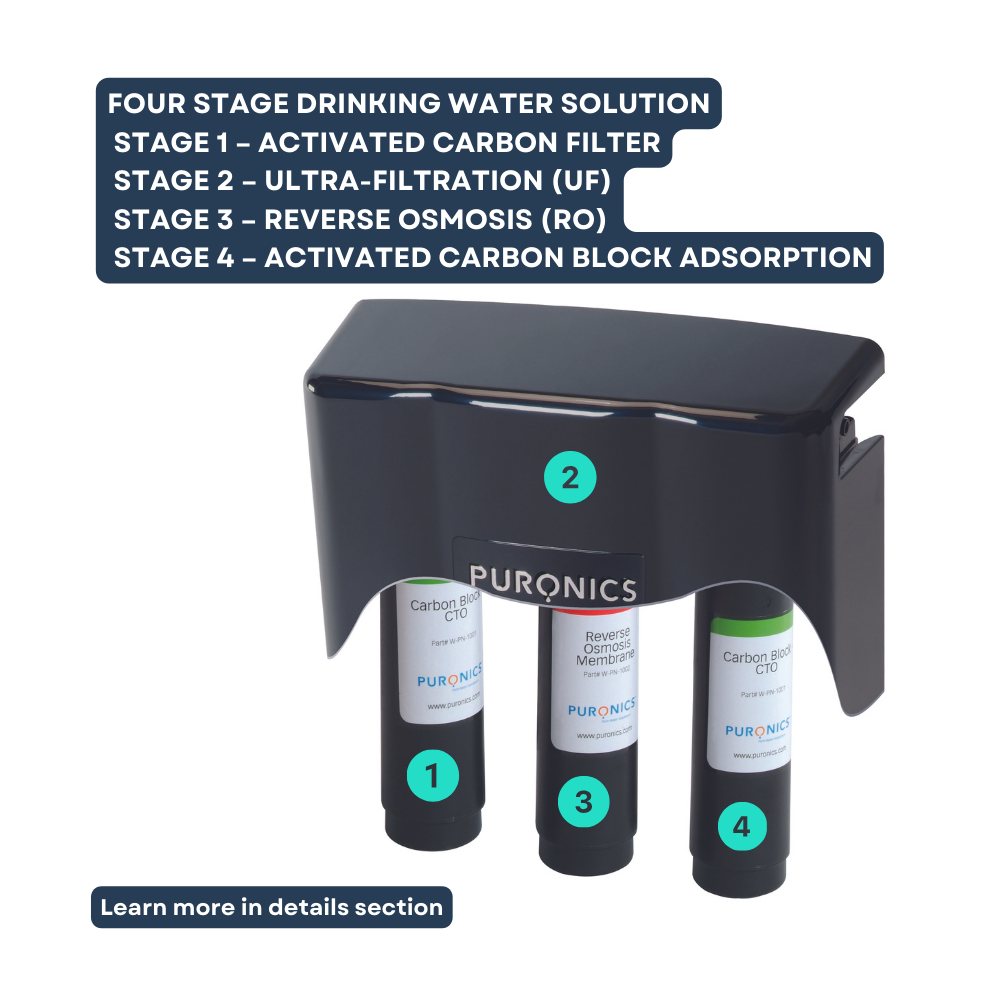 Unlike simple carbon filters, RO systems reduce virtually everything dissolved in your water—chlorine, heavy metals, fluoride, PFAS, pharmaceuticals. Filters like pitchers or faucet units only address taste, chlorine, and sediment.